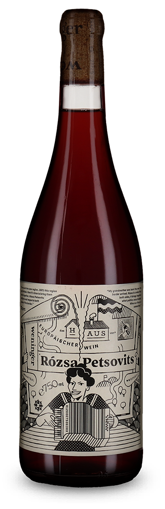 Im Jahr 2024 ist der ‚Rózsa Petsovits‘ erstmals ein reinsortiger Blaufränkisch bzw. Kékfrankos, wie die Sorte auf ungarischer Seite heisst. Die Trauben kommen von beiden Seiten der Grenze, aus Balf in Sopron sowie aus Horitschon und Ritzing im Mittelburgenland. Die Reben stehen auf 200 bis 320 Metern in Böden aus Gneis, Lehm und Kalk. Nach der Handlese erfolgte die spontane Gärung für zehn Tage im Holzfass, danach wurde der Wein dort für sechs Monate auf der Hefe ausgebaut.
