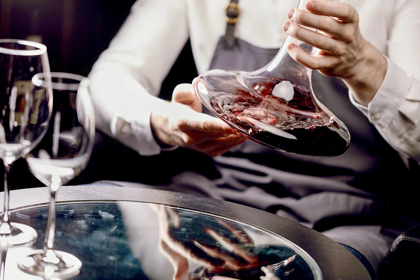 Und wenn wir schon bei der Karaffe sind … Wenn Sie gerne gereifte Weine trinken und diese dementsprechend dekantieren, ist eine Karaffe natürlich ein sehr nützliches Weinzubehör. Was auch für einen bauchigeren Dekanter gilt, falls Sie einen Wein vor dem Genuss einfach ein wenig atmen lassen möchten. Das bietet sich ja vor allem bei jüngeren Rotweinen mit vielen Gerbstoffen oder aber in Holz ausgebauten Weissweinen an. Die Tannine werden runder, das Holzaroma harmonischer. Für Dekanter kann man ein kleines Vermögen ausgeben, muss man aber nicht. Selbst der grosse Wein-Journalist Hugh Johnson greift nach eigenen Angaben am liebsten zu einem sehr schlichten Dekanter aus Glas zurück. Wobei auch wir zugeben müssen, dass ein besonders edles Modell aus Kristall vor allem während festlicher Menüs auf dem Tisch einfach verdammt gut aussieht. Aber auch hier: für den Weingenuss selbst ist es komplett irrelevant, wie hochwertig und teuer der Dekanter war.