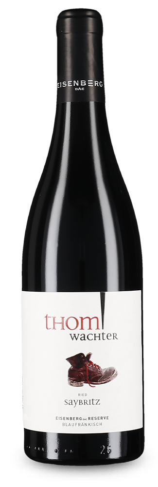 Bei der Riede Saybritz handelt es sich um eine steil nach Süden abfallende Hanglange, die im Unterboden von blauem und grünem Schiefer und basaltischen Tuffen, im Oberboden von Tonlöss und Kalk geprägt ist. Das Klima sorgt dafür, dass die Reben dort hervorragend belüftet werden. Thom Wachter hat den Blaufränkisch 24 Monate lange als Reserve im 500-Liter-Tonneaux ausgebaut.